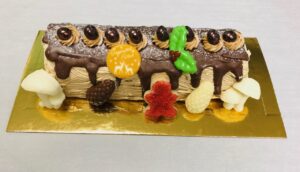 Glaçage chocolat (choix de pâte à gâteau (vanille ou chocolat) et de garniture (fondant aux fruits (différentes saveurs disponibles), caramel, praliné, chocolat, vanille)) 50$
