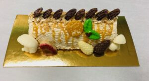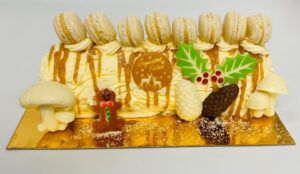 Érable (pâte à gâteau vanille, crème au beurre à l’érable , caramel à l’érable , pacanes au sirop d’érable) 50$