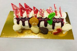Glaçage vanille (choix de pâte à gâteau (vanille ou chocolat) et de garniture (fondant aux fruits (différentes saveurs disponibles), caramel, praliné, chocolat, vanille)) 50$