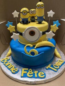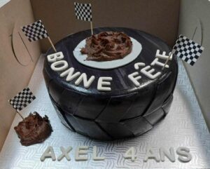 recouvert de fondant avec décors et écriture